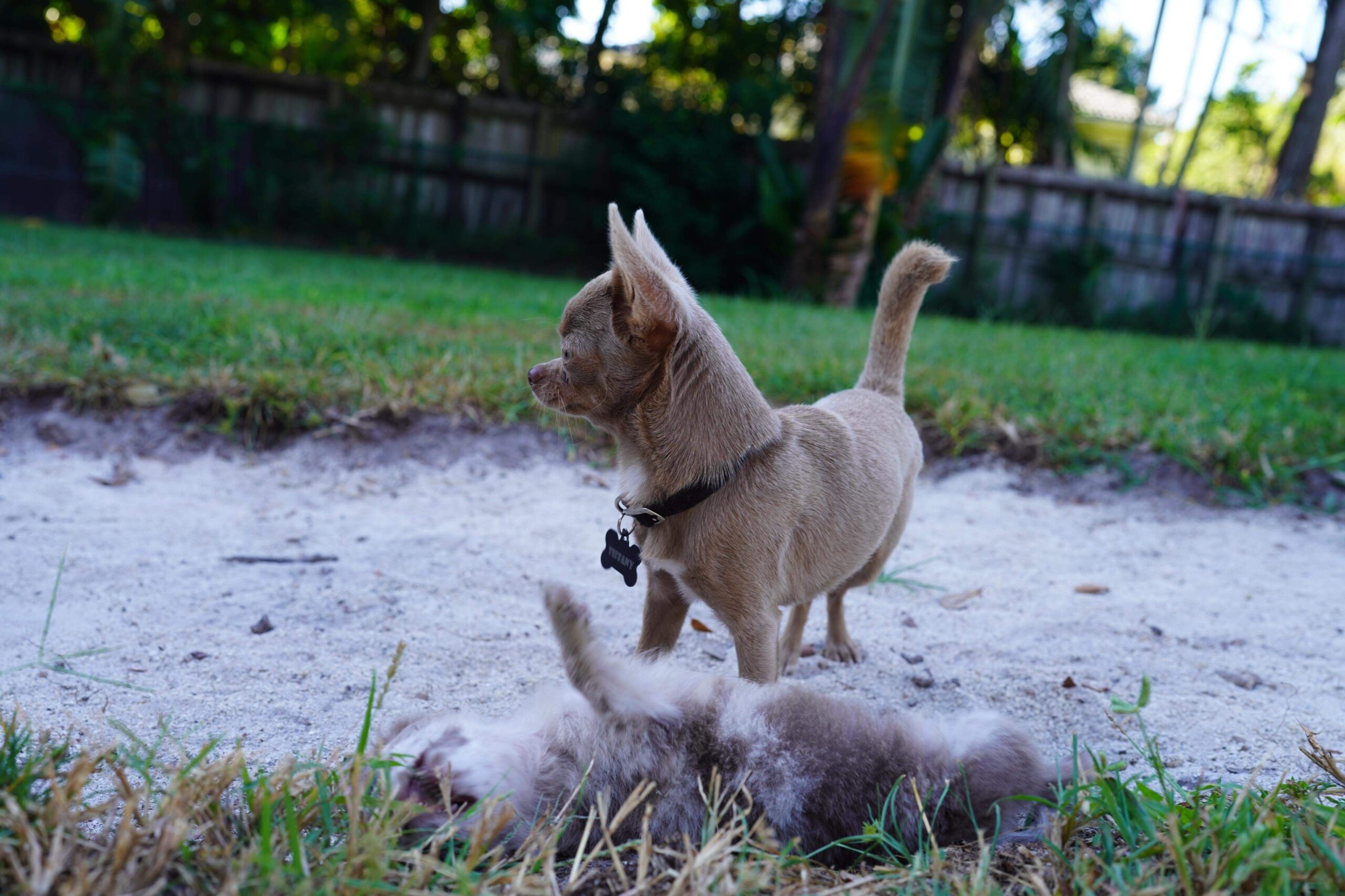 Luna, the most hyper Chi out there. She loves agility and any kind of obstacles she can jump over. Nobody can beat her speed not even my weimaraner 🙂